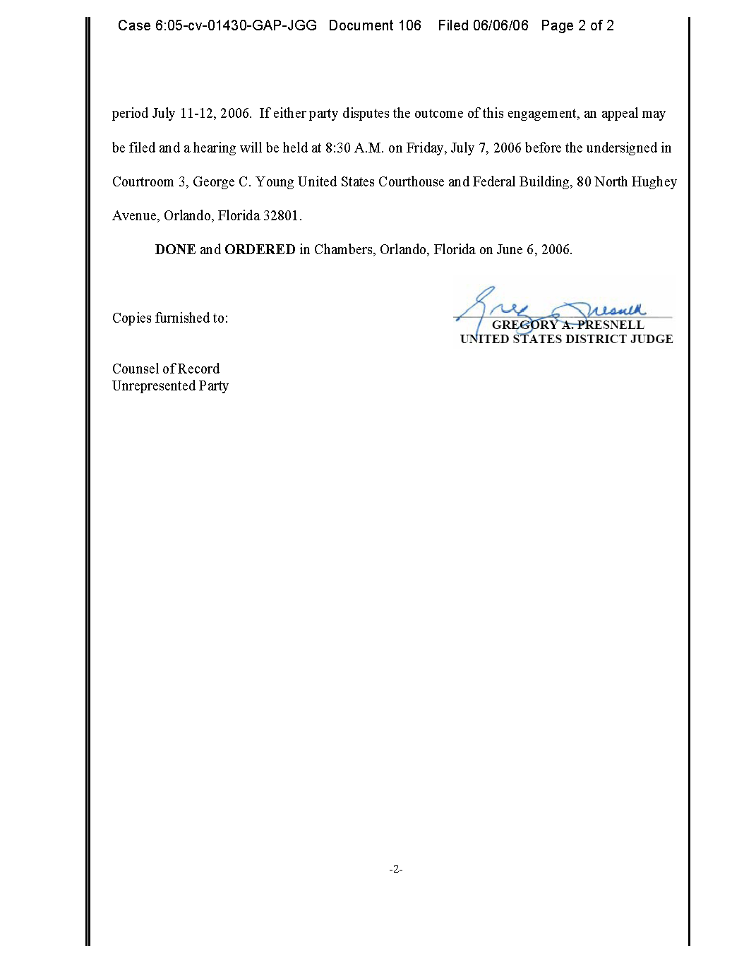 DONE and ORDERED in Chambers, Orlando, Florida on June 26, 2006.